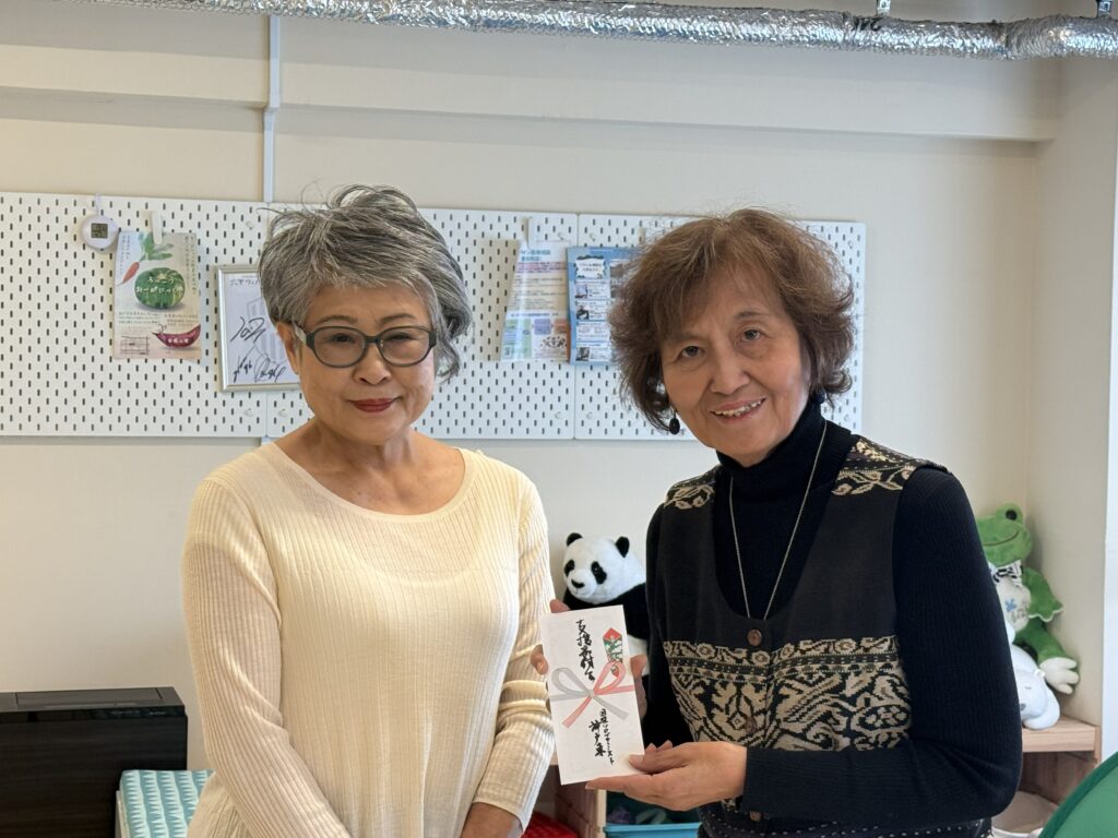 11月10日には、会長と数名の会員でミモザハウスを訪問し、寄付金をお渡しいたしました。