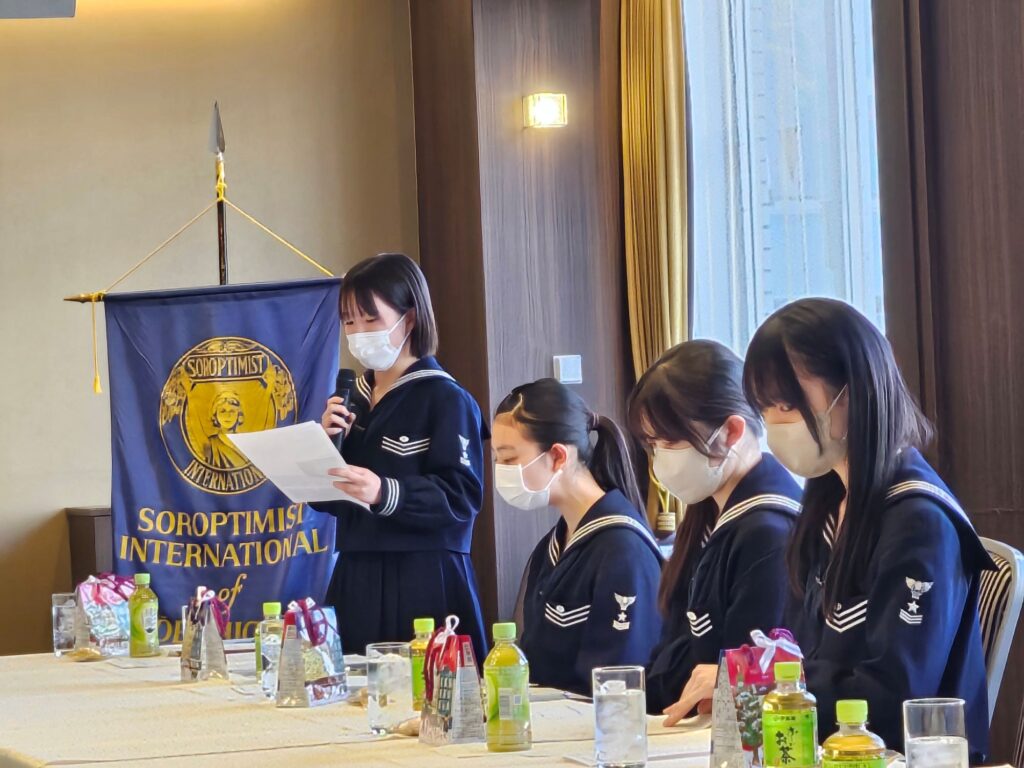 学校から例会場に来ていただき、生徒さんから一年間の活動報告をしていただきました。